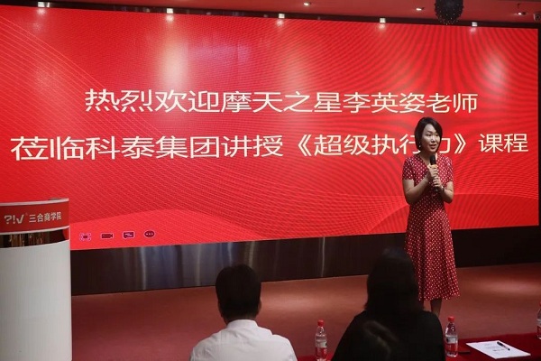 科泰楊雙林首先上臺致歡迎辭,感謝李老師在百忙之中蒞臨科泰集團進行培訓授課。李老師隨后介紹了摩天之星的主要服務情況,并且圍繞著《超級執行力》這一品牌課程展開了具體講解。