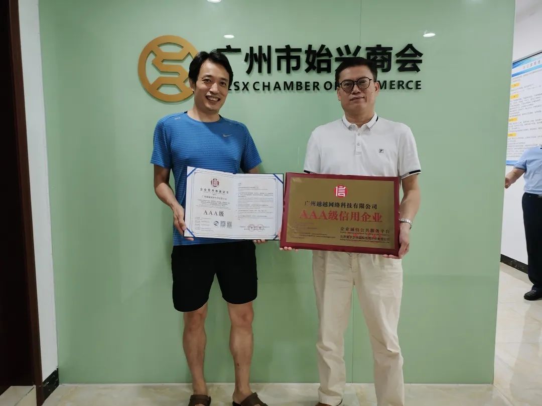 本次獲得AAA級信用認證的會員企業有:廣州市大智優品家居有限公司、廣東順牌實業有限公司、廣州闊客信息技術有限公司、廣州市瑋佳門業有限公司、廣州越越網絡科技有限公司、廣州曾伍通信設備有限公司。