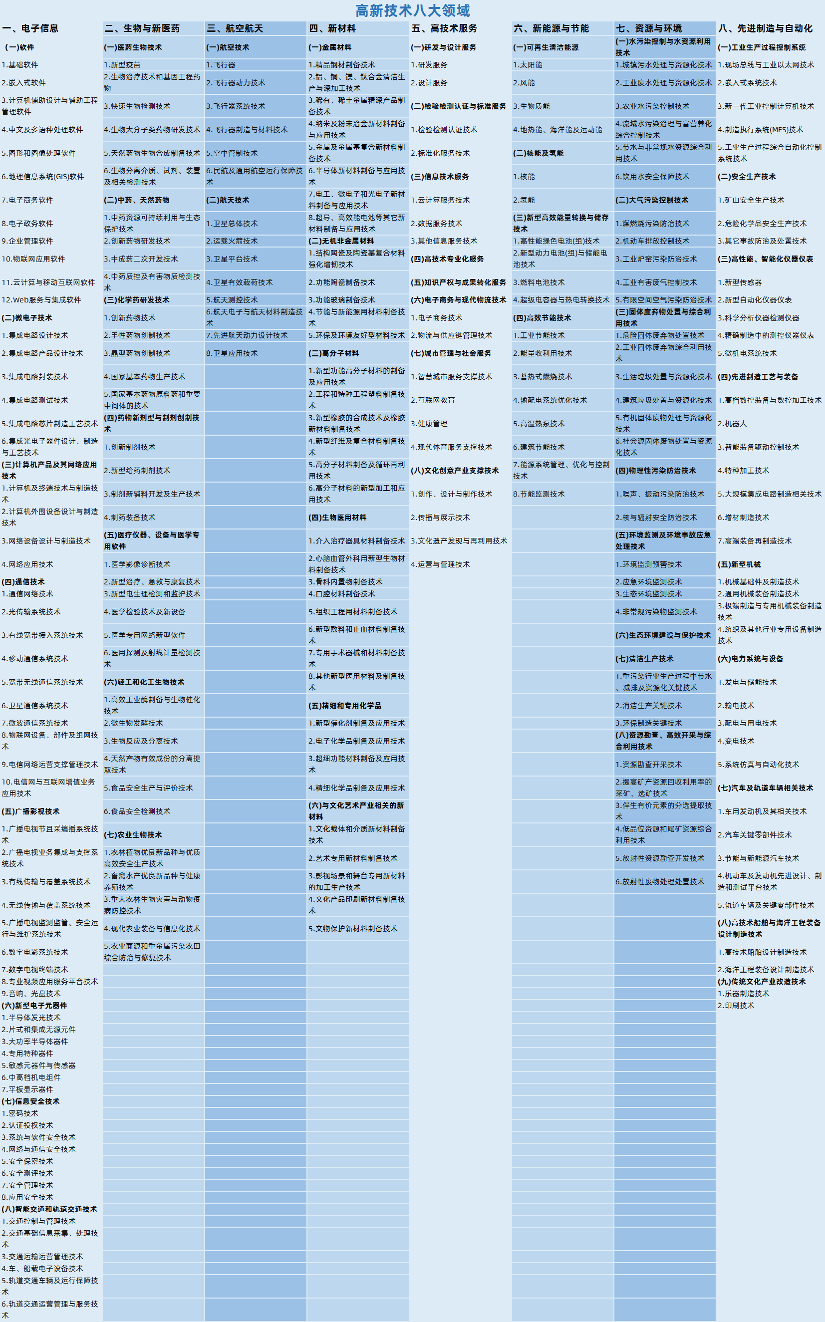 高新技術企業申報領域,分成八類,分別是:1.電子信息技術、2.生物與新醫藥技術、3.航空航天技術、4.新材料技術、5.高技術服務、6.新能源與節能技術、7.資源與環境技術、8.先進制造與自動化。企業可根據自身行業屬性在對應領域進行申報浙江高新技術企業認定。